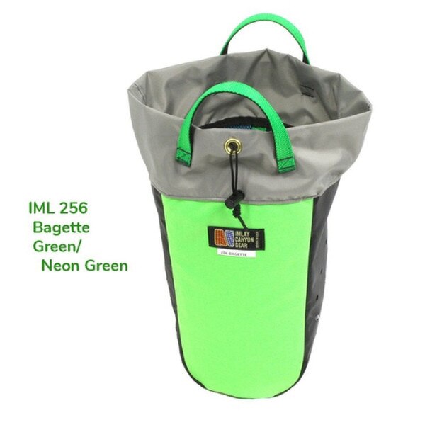 The Pull-Cord Bagette is designed for 210 feet (63m) of 6mm pull cord. The PVC sides have holes for drainage, while the foam on the front and back holds the bag open and keeps bag and cord from seeking the bottom of that pool. The stiff rim, flared top and two big, sturdy handles make loading the cord in the bag as easy as ho-made pie!!